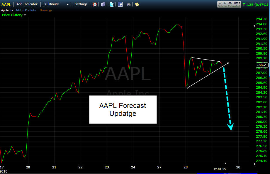 Although AAPL and GOOG have met preliminary targets of decline after the time cycles completion, however, there is high probability that trend is to continue. In said event the targets are shown in the charts. Sometimes I use the charts to eliminate the noise from the lows and highs of the trading days.
