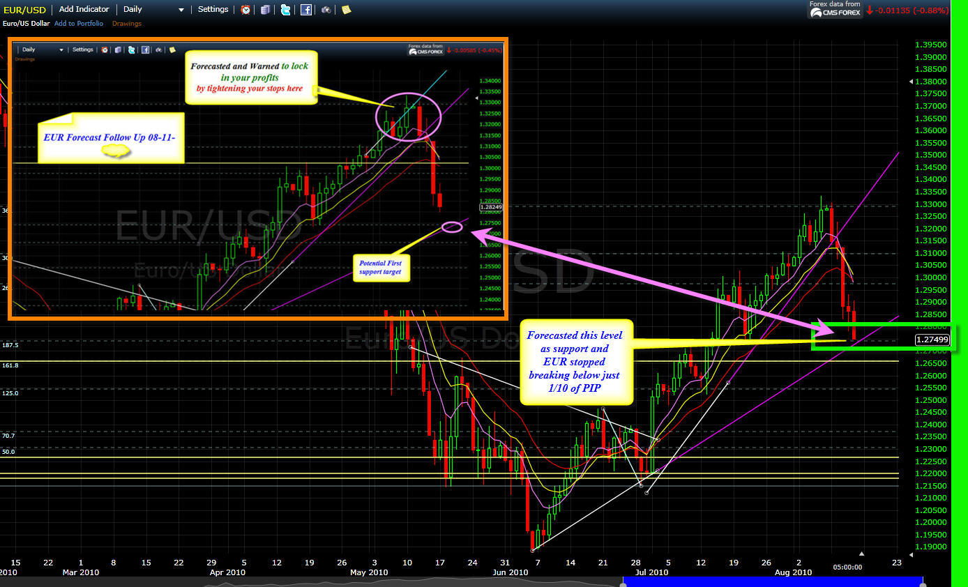 EUR forecast came to fruition on both parts, first on the intermediate top, warning issued on August 04th. After topping, I had given a first price profit target.